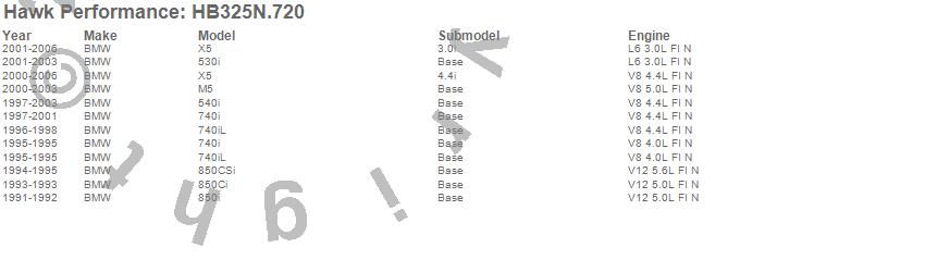 Below is an abreviated list of applications for the HP Plus Disc Brake Pad.