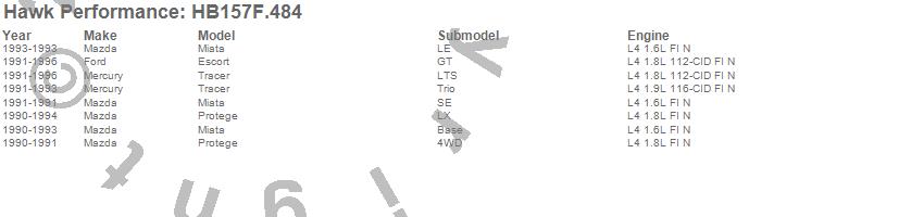 Below is an abreviated list of applications for the HPS Disc Brake Pad.
