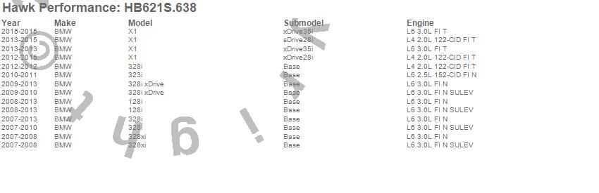 Below is an abreviated list of applications for the HT-10 Disc Brake Pad.128i, 323i, 328i, 328i xDrive, 328xi, X1, BMW, 2015, 2014, 2013, 2012, 2011, 2010, 2009, 2008, 2007 moreā¦