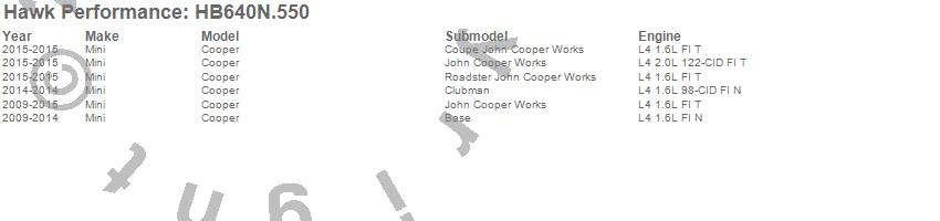 Below is an abreviated list of applications for the HP Plus Disc Brake Pad.