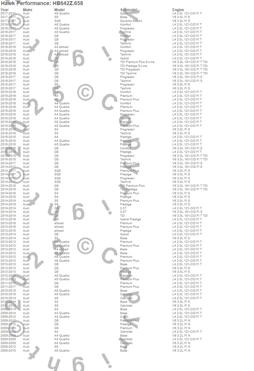 Below is an abreviated list of applications for the Performance Ceramic Disc Brake Pad.