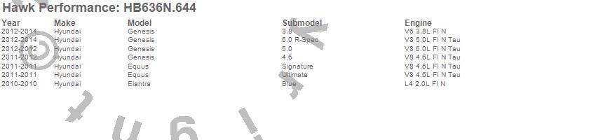 Below is an abreviated list of applications for the HP Plus Disc Brake Pad.