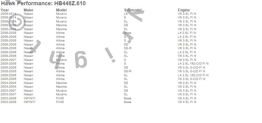 Below is an abreviated list of applications for the Performance Ceramic Disc Brake Pad.
