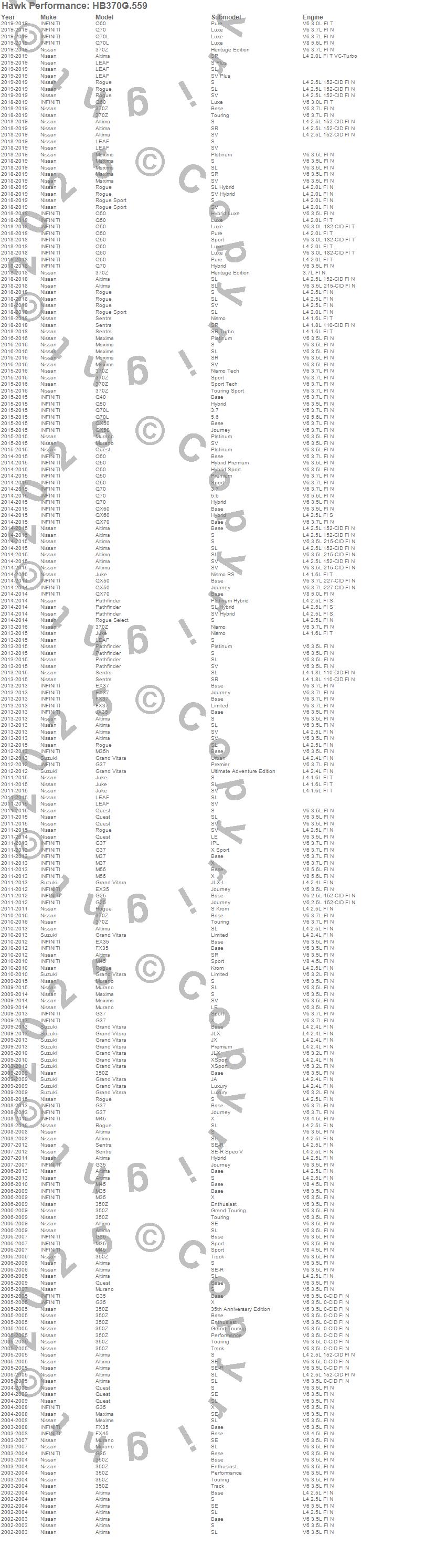 350Z, 370Z, Altima, EX35, EX37, FX35, FX37, FX45, G25, G35, G37, Grand Vitara, Juke, JX35, LEAF, M35, M35h, M37, M45, M56 moreā¦