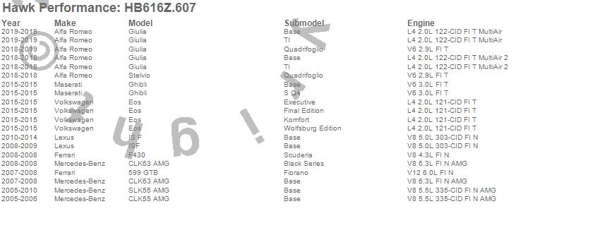 Below is an abreviated list of applications for the Performance Ceramic Disc Brake Pad.