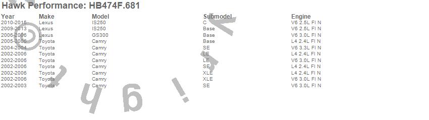 Hawk Performance #HB474F.681 HPS Disc Brake Pad Features: