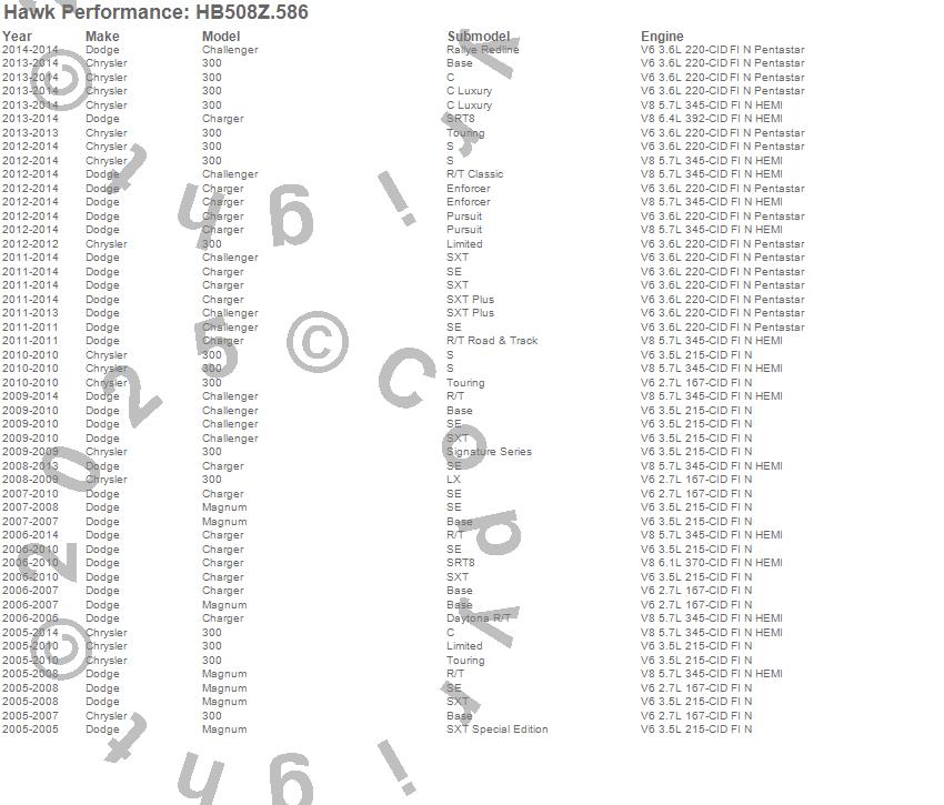Below is an abreviated list of applications for the Performance Ceramic Disc Brake Pad.