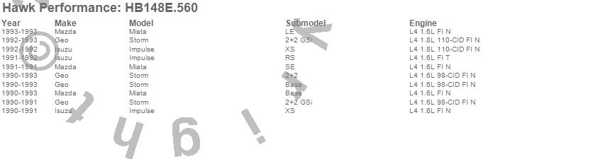 Below is an abreviated list of applications for the Blue 9012 Disc Brake Pad.Impulse, Miata, Storm, Geo, Isuzu, Mazda, 1993, 1992, 1991, 1990 moreā¦