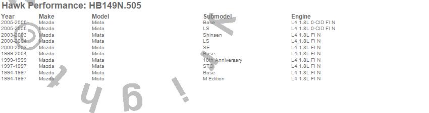 Below is an abreviated list of applications for the HP Plus Disc Brake Pad.