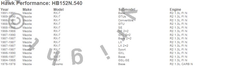 Below is an abreviated list of applications for the HP Plus Disc Brake Pad.