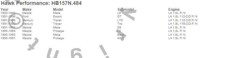 Below is an abreviated list of applications for the HP Plus Disc Brake Pad.