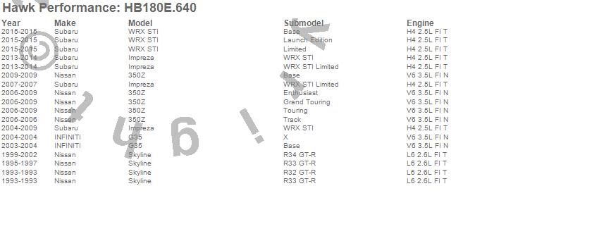 Below is an abreviated list of applications for the Blue 9012 Disc Brake Pad.