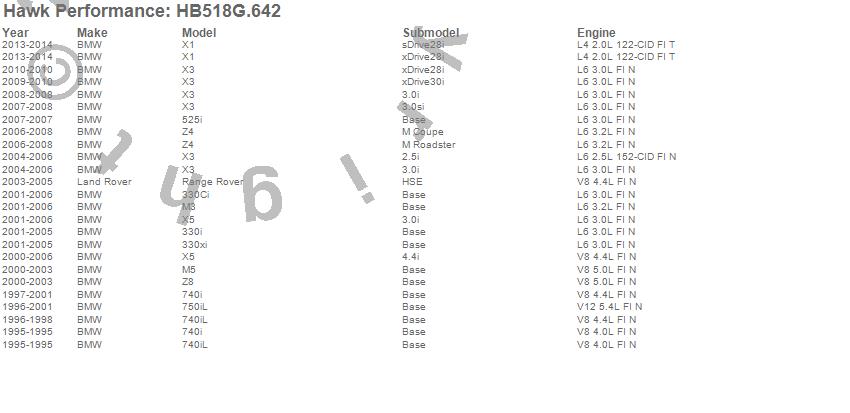 Below is an abreviated list of applications for the DTC-60 Disc Brake Pad.
