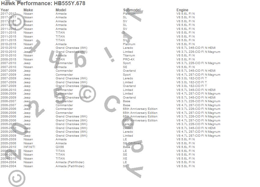 Below is an abreviated list of applications for the LTS Disc Brake Pad.Armada, Armada (Pathfinder), Commander, Grand Cherokee (WK), QX56, TITAN, INFINITI, Jeep, Nissan, 2017, 2015, 2014, 2013, 2012, 2011, 2010, 2009, 2008, 2007, 2006 moreā¦