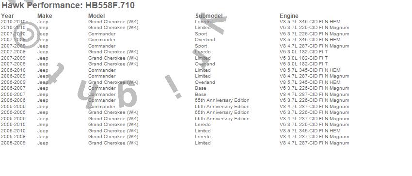 Below is an abreviated list of applications for the HPS Disc Brake Pad.