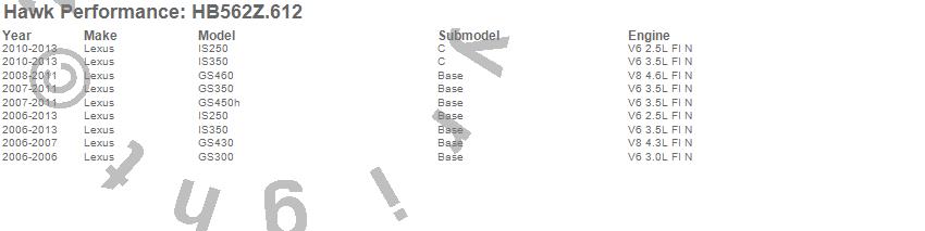 Below is an abreviated list of applications for the Performance Ceramic Disc Brake Pad.