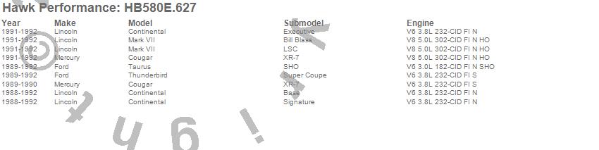 Below is an abreviated list of applications for the Blue 9012 Disc Brake Pad.Continental, Cougar, Mark VII, Taurus, Thunderbird, Ford, Lincoln, Mercury, 1992, 1991, 1990, 1989, 1988 moreā¦