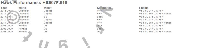 Below is an abreviated list of applications for the HPS Disc Brake Pad.