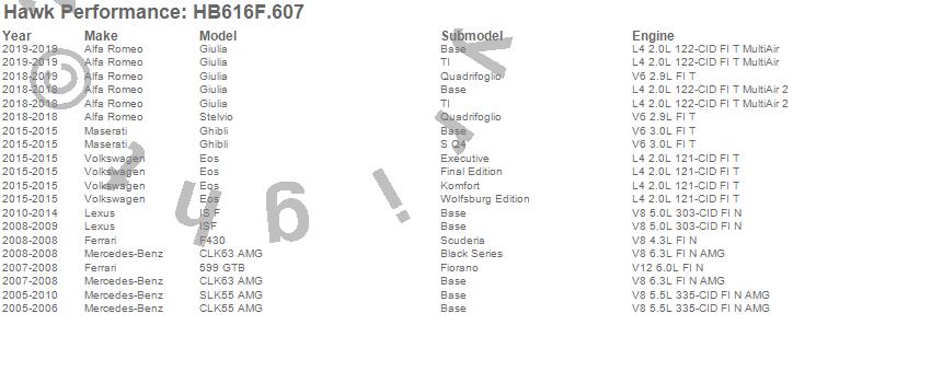 Below is an abreviated list of applications for the HPS Disc Brake Pad.