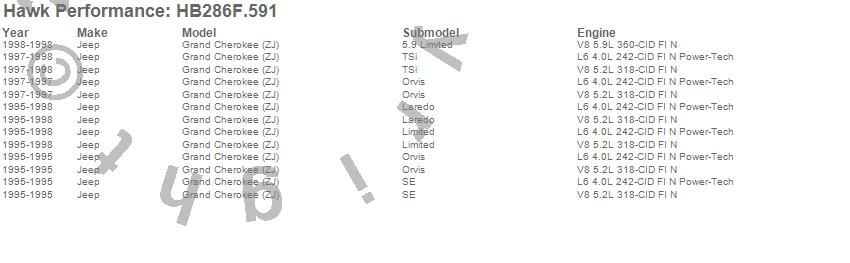 Below is an abreviated list of applications for the HPS Disc Brake Pad.