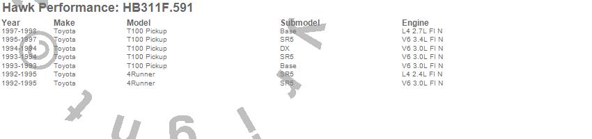 Below is an abreviated list of applications for the HPS Disc Brake Pad.