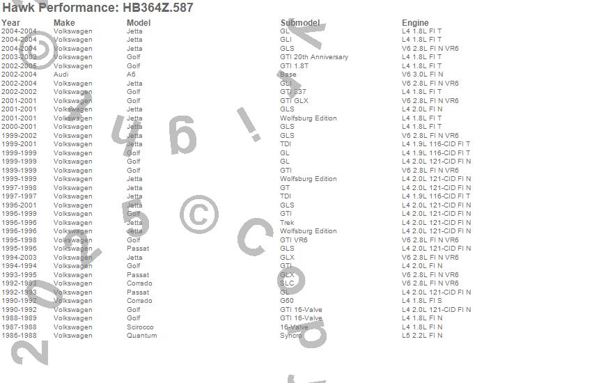 Below is an abreviated list of applications for the Performance Ceramic Disc Brake Pad.
