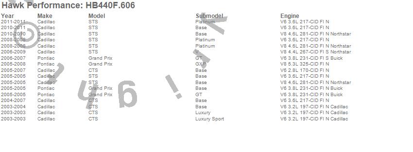 Below is an abreviated list of applications for the HPS Disc Brake Pad.