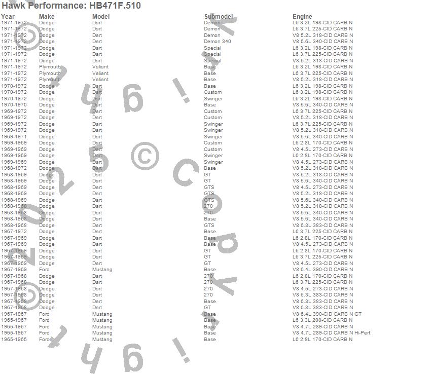 Below is an abreviated list of applications for the HPS Disc Brake Pad.