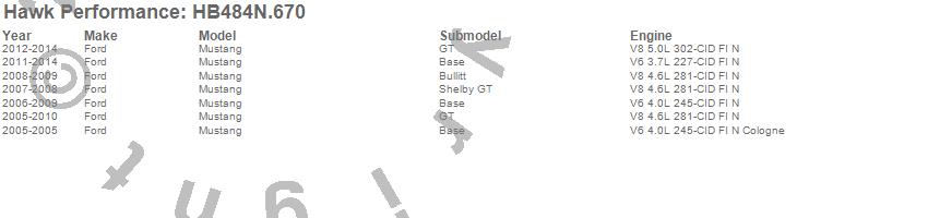 Below is an abreviated list of applications for the HP Plus Disc Brake Pad.