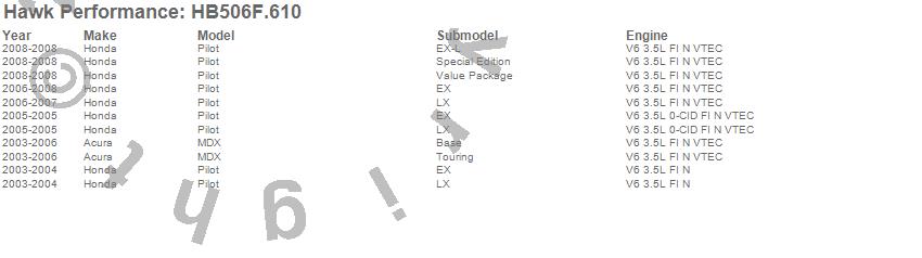 Below is an abreviated list of applications for the HPS Disc Brake Pad.