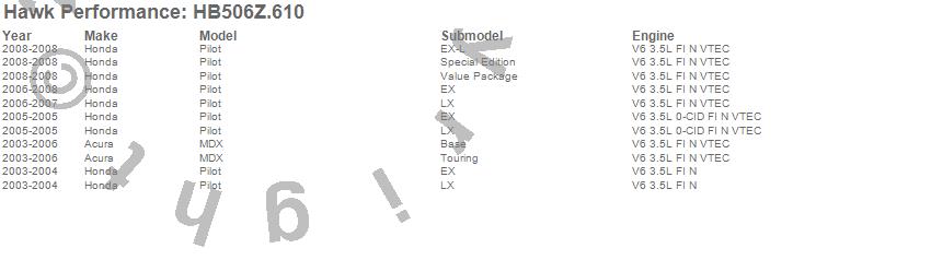 Below is an abreviated list of applications for the Performance Ceramic Disc Brake Pad.MDX, Pilot, Acura, Honda, 2008, 2007, 2006, 2005, 2004, 2003 moreā¦