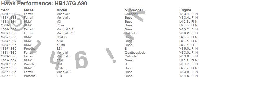 Below is an abreviated list of applications for the DTC-60 Disc Brake Pad.