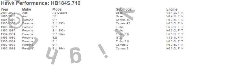 Below is an abreviated list of applications for the HT-10 Disc Brake Pad.911, 928, A8 Quattro, S8, Audi, Porsche, 2003, 2002, 2001, 1998, 1997, 1996, 1995, 1994, 1993, 1992 moreā¦