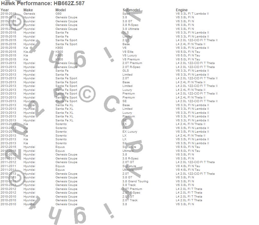 Below is an abreviated list of applications for the Performance Ceramic Disc Brake Pad.