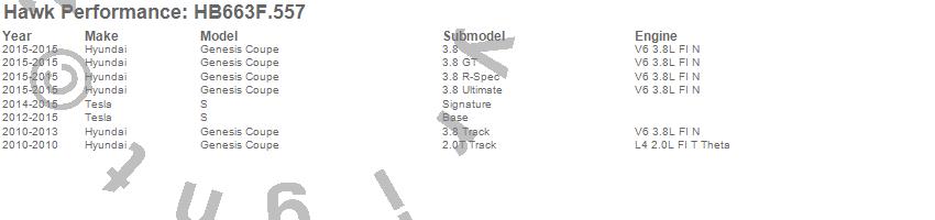 Below is an abreviated list of applications for the HPS Disc Brake Pad.