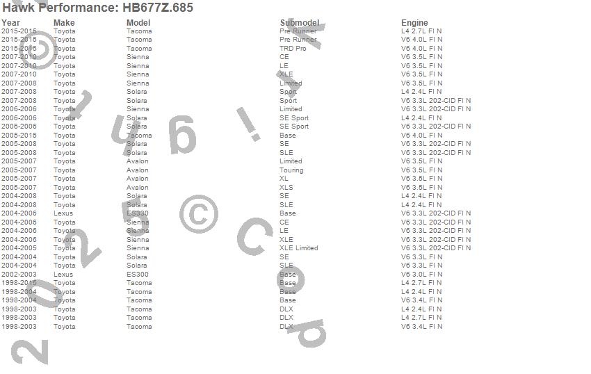 Below is an abreviated list of applications for the Performance Ceramic Disc Brake Pad.