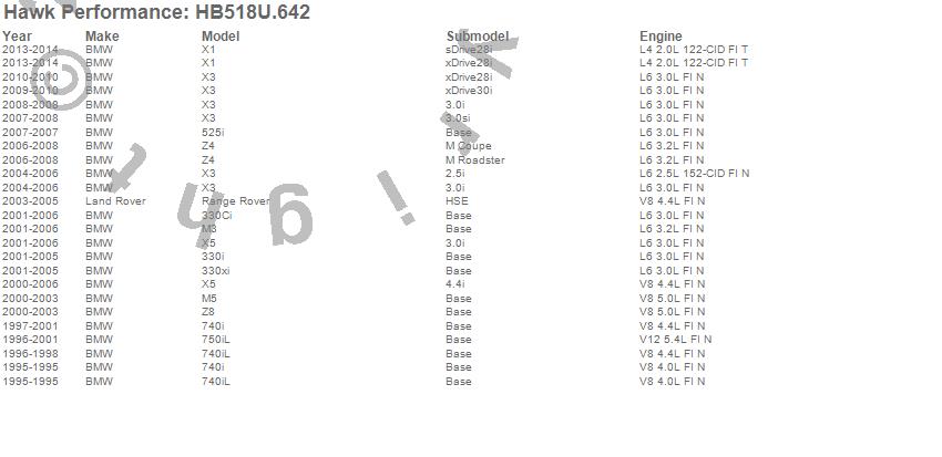 Below is an abreviated list of applications for the DTC-70 Disc Brake Pad.