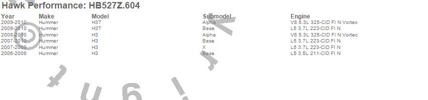 Below is an abreviated list of applications for the Performance Ceramic Disc Brake Pad.H3, H3T, Hummer, 2010, 2009, 2008, 2007, 2006 moreā¦