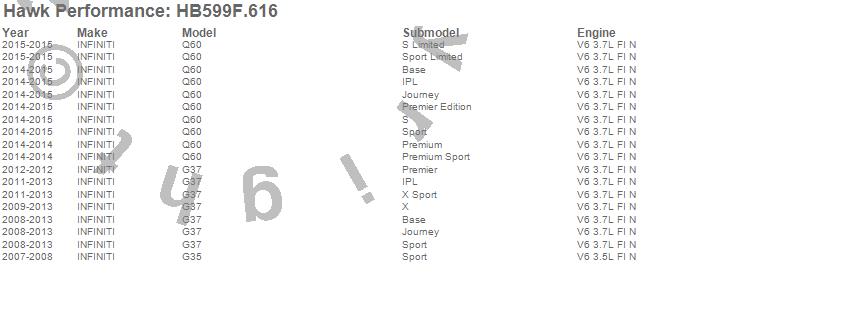 Below is an abreviated list of applications for the HPS Disc Brake Pad.