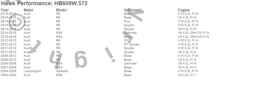 Below is an abreviated list of applications for the DTC-30 Disc Brake Pad.Gallardo, R8, RS4, RS5, RS6, Audi, Lamborghini, 2015, 2014, 2013, 2012, 2011, 2010, 2009, 2008, 2007, 2005, 2004, 2003 moreā¦