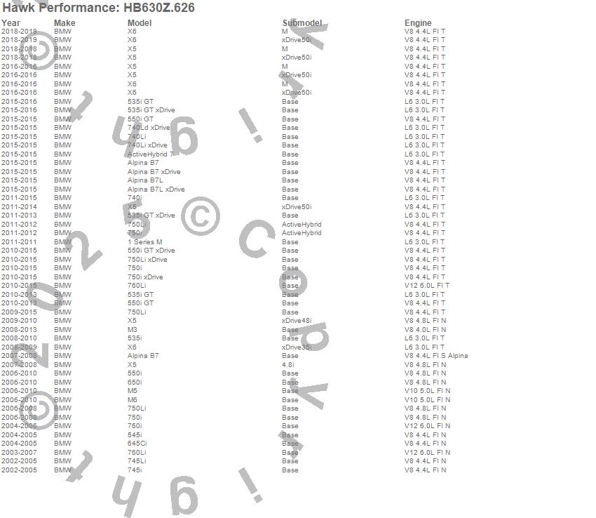 Below is an abreviated list of applications for the Performance Ceramic Disc Brake Pad.