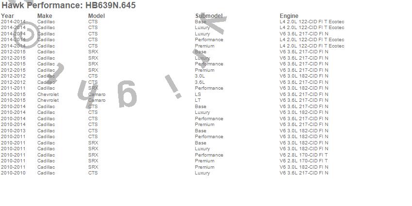 Below is an abreviated list of applications for the HP Plus Disc Brake Pad.