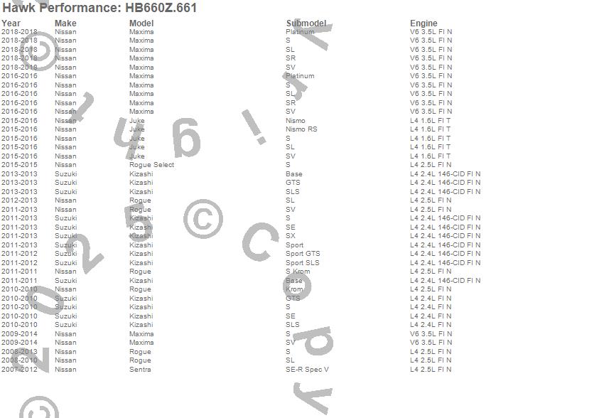 Hawk Performance HB660Z.661 Performance Ceramic Disc Brake Pad
