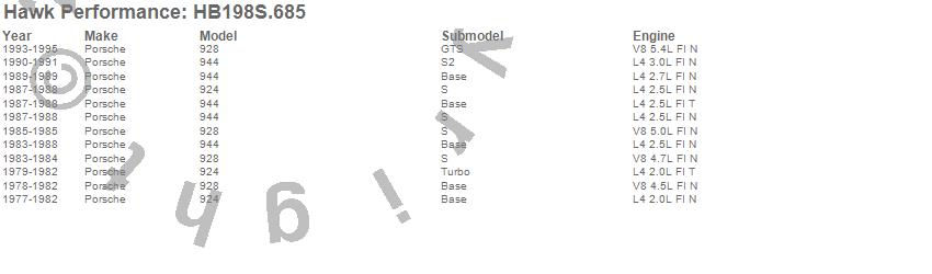 Below is an abreviated list of applications for the HT-10 Disc Brake Pad.924, 928, 944, Porsche, 1995, 1994, 1993, 1991, 1990, 1989, 1988, 1987, 1986, 1985, 1984, 1983, 1982, 1981, 1980, 1979 moreā¦