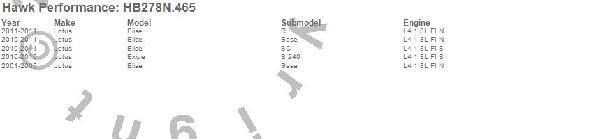 Below is an abreviated list of applications for the HP Plus Disc Brake Pad.