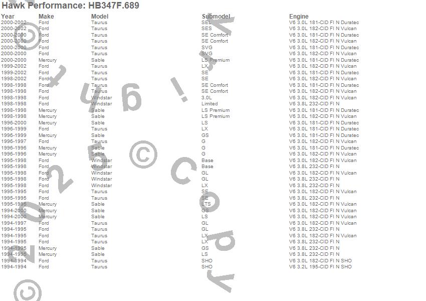 Below is an abreviated list of applications for the HPS Disc Brake Pad.