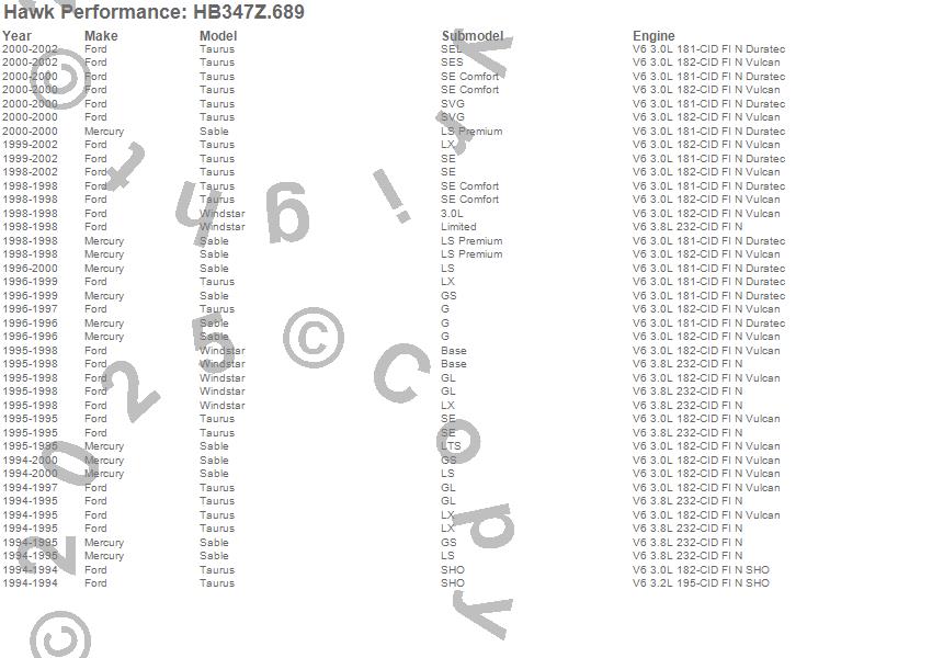 Below is an abreviated list of applications for the Performance Ceramic Disc Brake Pad.