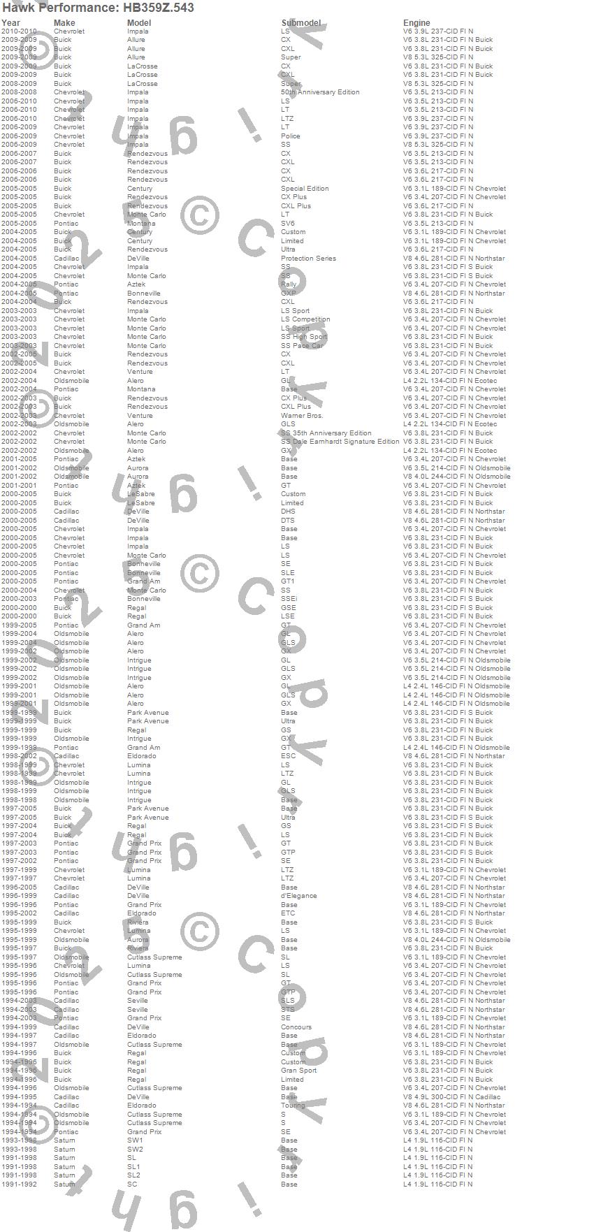 Hawk Performance HB359Z.543 Performance Ceramic Disc Brake Pad