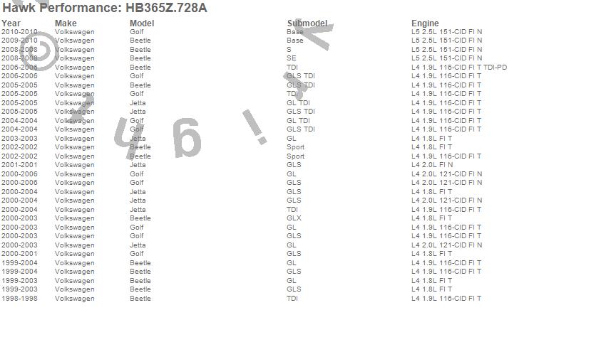 Below is an abreviated list of applications for the Performance Ceramic Disc Brake Pad.