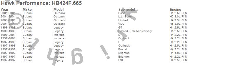 Below is an abreviated list of applications for the HPS Disc Brake Pad.
